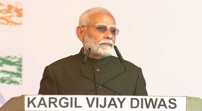 पीएम मोदी ने कहा कि मेरा सौभाग्य है कि कारगिल युद्ध के समय मैं एक सामान्य देशवासी के रूप में अपने सैनिकों के बीच था। आज जब मैं फिर कारगिल की धरती पर हूं, तो स्वाभाविक है कि वो स्मृतियां मेरे मन में ताजा हो गई हैं। उन्होंने आगे कहा कि आज लद्दाख की ये महान धरती कारगिल विजय के 25 वर्ष पूरे होने की साक्षी बन रही है। कारगिल विजय दिवस हमें बताता है कि राष्ट्र के लिए दिए गए बलिदान अमर होते हैं।